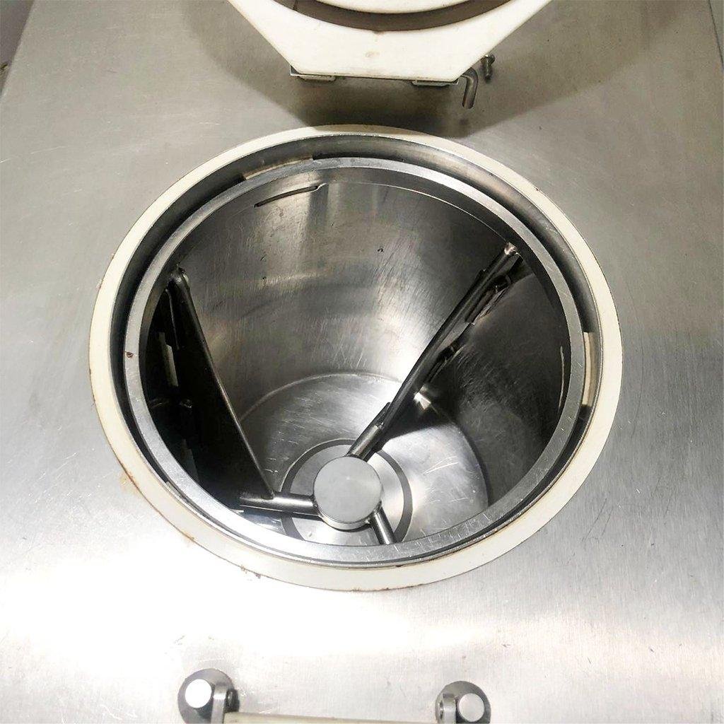 Steel beater with scrapers. Dispensing door with double outlet for ice cream and washing water. Transparent cover which allows the operator to check the product during the production cycle. Hopper with large holes for introducing hard pieces (such as nuts, almonds, pistachios, raisins, etc.) and melted chocolate for “stracciatella” flavour. Large grid-less extraction hole enabling the complete ejection of the introduced solid ingredients.